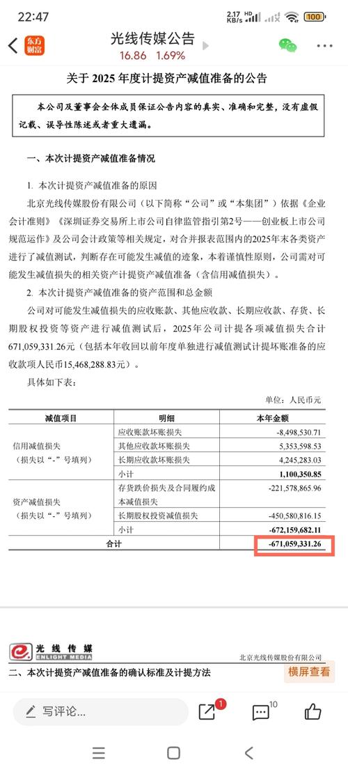 $光线传媒(SZ300251)$ 1、35亿理财,说明财务状况良好 2、2025年计提6.71亿,严重影响2025年利润,这雷排得不错!! 3、出售金融资产:$当虹科技(SH688039)$:8843520*0.5*42.88/10000=1.896亿,考虑股价下跌因素,1.5亿收入是有的,但未查询其购入成本,有多少利润不知道,但至少是块肥肉。但是,以后这些资产要减半了,一次性,只是权宜之机,充实...