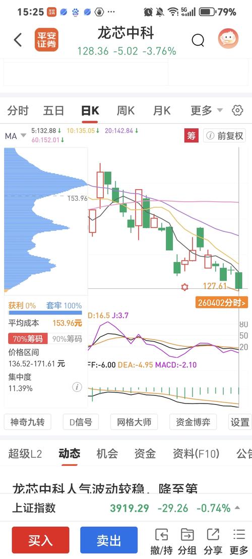 $龙芯中科(SH688047)$2026年4月2日,龙芯中科收盘价128.36元,收跌3.76%。盘中最低价127.61元,再创年内新低。目前平均成本153.96元,主力成本156.06元,获利盘为0,套牢盘高达100%。获利盘为0,意味着持有龙芯中科的股民,几乎都是亏钱的。主力平均亏损幅度达到17.75%。尽管主力已亏成这个熊样,仍然不计成本地往下打压。其用意不言自明。 本人143元建仓,一直没...