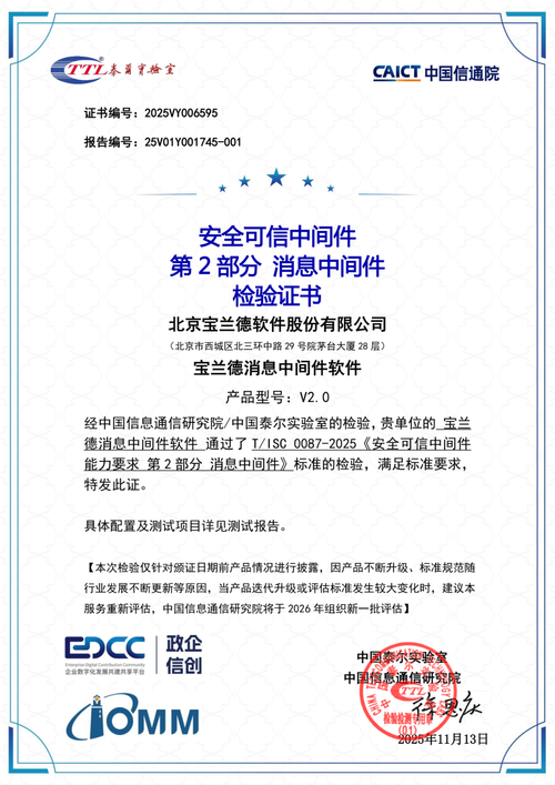 权威认证,实力领航:宝兰德4款产品通过2025年安全可信中间件评估