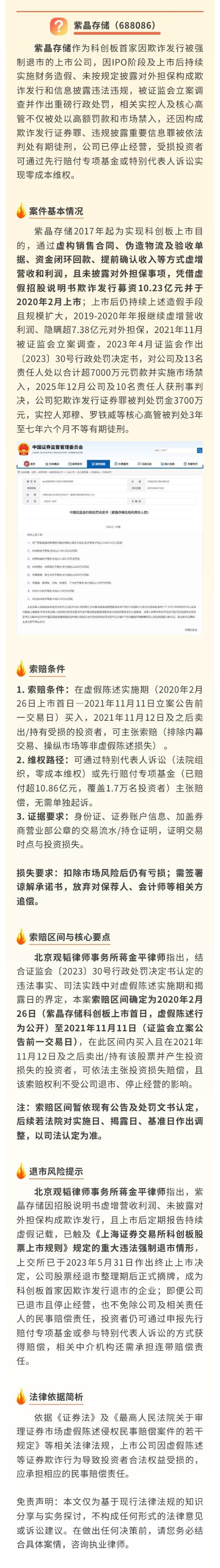 2020年,$退市紫晶(SH688086)$顶着光存储第一股的光环登陆科创板,开盘暴涨264%,市值一度冲上百亿,创始人身家飙到30亿。短短三年后,公司被强制退市,10名高管全部被判刑,实控人蹲七年半,近1.7万名投资者血本无归。这可不是商战剧,而是真实发生的A股大戏。这起案件之所以震动市场,不仅因为造假金额大、手段狠,更因为它暴露了注册制初期“上市容易、监管滞后”的致命短板。紫晶存储号称掌握自主...