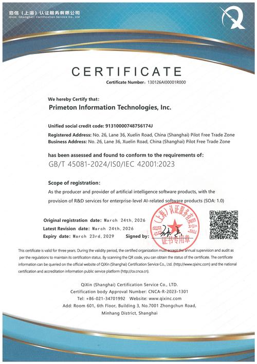 近日,普元信息技术股份有限公司(科创板股票代码:688118)作为AI原生数智基座平台提供商,正式取得ISO/IEC42001人工智能管理体系认证证书。至此,普元信息已构建起涵盖质量、信息安全、IT服务、环境、职业健康及人工智能的“六大ISO国际标准体系”矩阵。 这不仅是普元信息内部管理接轨国际规范的又一里程碑,更是其作为连续四年登榜“上海硬核科技企业TOP100”的AI原生数智基座平台提供商,向...