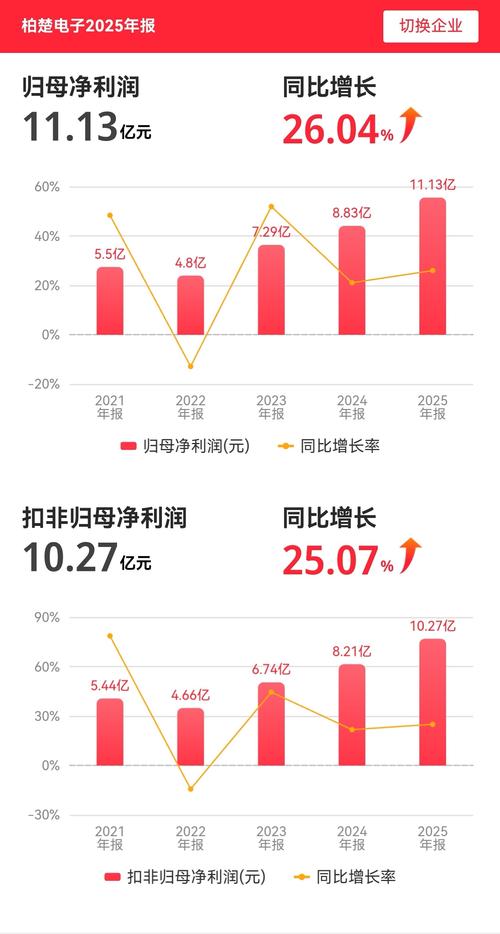 挖贝网4月10日,柏楚电子[688188]近日发布2025年年度报告,报告期内,公司实现营业收入219,563.23万元,较上年同期增加26.52%;归属于上市公司股东的净利润为111,254.76万元,较上年同期增加26.04%;归属于上市公司股东的扣除非经常性损益的净利润为102,674.42万元,较上年同期增加25.07%。 2025年,公司根据不同细分应用场景的加工需求,进一步丰富行业解决...