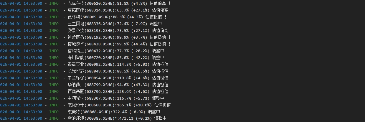 $光库科技(SZ300620)$实时估值81%,上升4%,今日上涨,指标分数估值偏高,如果分数估值能保持继续扩大趋势,可以继续关注一下标的后续行情。 $迪哲医药-U(SH688192)$实时估值99%,上升3%,今日涨幅明显,指标分数估值极值,如果分数估值能保持继续扩大趋势,可以重点关注一下突破以后的空间。 $诺诚健华(SH688428)$实时估值99%,上升4%,今日上涨,指标分数估值极值,若分...