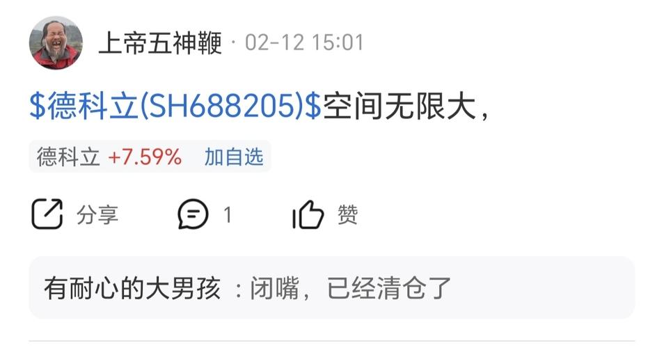 $德科立(SH688205)$2月12日说过空间无限大