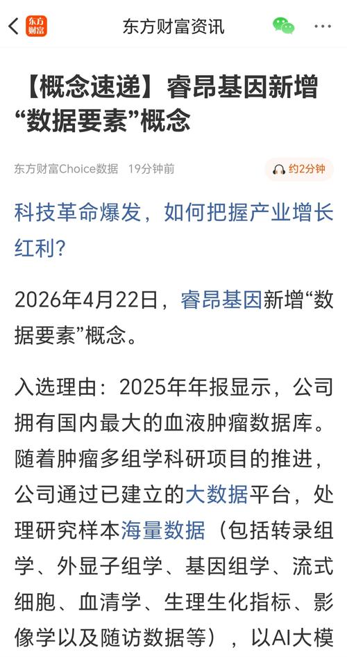 资讯 【概念速递】睿昂基因新增“数据要素”概念