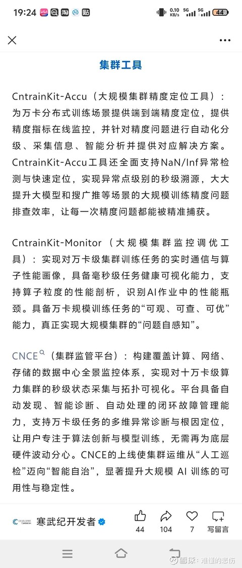 $寒武纪-U(SH688256)$今天在寒武纪的官方公众号(寒武纪开发者)发布了一篇名为易用好用,寒武纪引领AI芯片软件新生态的文章,总结起来就是: 寒武纪自成立以来,始终致力于为“人工智能的大爆发”提供底层算力支持。通过近十年的技术积累,公司已构建起从自研芯片架构到高性能软件平台的完整体系,实现了硬件算力与软件易用性的统一。 CambriconNeuWare作为寒武纪的核心基础软件平台,支持云、...