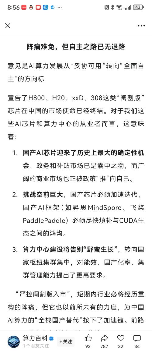 $寒武纪-U(SH688256)$$云天励飞-U(SH688343)$ (SH688343)$ 最新的指导文件,要求严格控制阉割版Ai芯片进入中国,基本都要全国产化!!! 这是史诗级的机遇!尤其是Ai芯片龙头,寒武纪,最快放量,产品断崖式领先。 字节跳动270亿订单,只是个前菜而已,其他的都在排队要寒武纪的训练,推理芯片!! 2026年寒武纪营收最少300亿。净利润120打底!