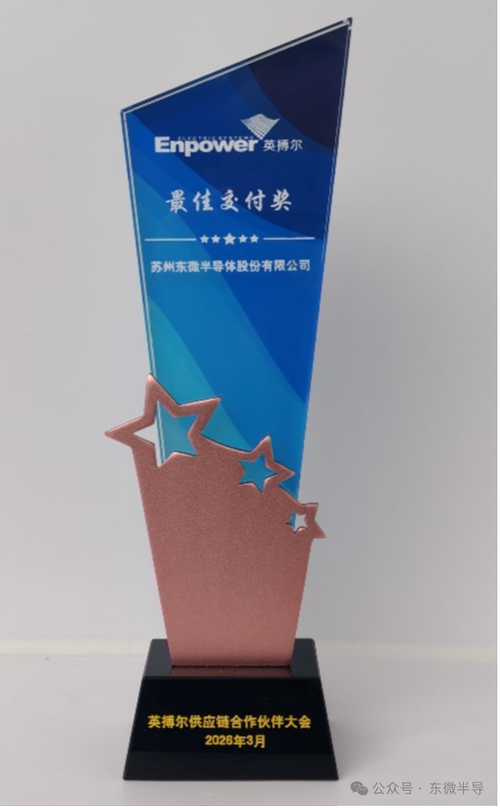 近日,在珠海英搏尔电气股份有限公司(股票代码:300681,简称“英搏尔”)举办的2026年供应链合作伙伴大会上,苏州东微半导体股份有限公司(股票代码:688261,简称“东微半导”)凭借其在功率半导体领域的技术创新、产品可靠性及出色的供应链交付表现,荣获英搏尔颁发的“最佳交付奖”。该奖项是对东微半导在产能保障、订单响应、质量稳定及协同效率等方面综合实力的高度认可,标志着双方在新能源汽车电控系统领...