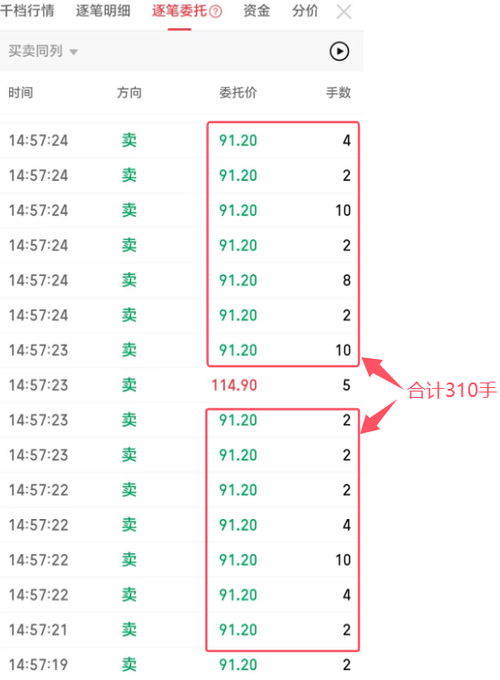 4月16日,联影医疗(688271)收于114.51元,涨0.45%,全天成交4.56亿元。从上午的3700手明牌压单,到下午2点10分2700手组合上攻单横扫一切,再到尾盘310手跌停价卖单精准压盘——这场看似多空激战的背后,实则是一双手在同时操控着压单与上攻单。大压单与大上攻单是同一伙资金,目的只有一个:拿到你手里的廉价筹码。 一、压单是“吓”,上攻是“收”:左右手的完美配合 中午收盘前,11...