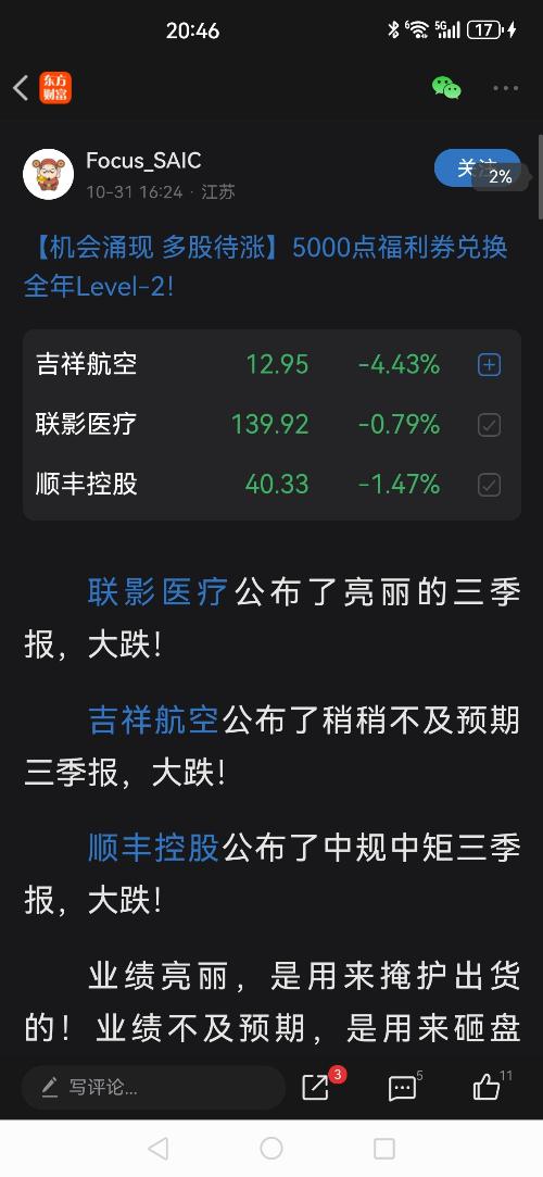 不期而遇666 更新于 10-31 22:16 1382次浏览 $联影医疗(SH688271)$从中医角度看Focus_SAIC!它心里有一团火!“心梗”的概率很大!所以老说120会去图片里的老破小里接它!为什么:1.长期夜里3点四点Ai小作文修改,6点起来盘前引导(我都会了略做双向小T没别的哈哈)!2.年龄估计40-50多了吧!所以理解这种失败中年男,本想找点在社会中找不到的成就感在这(接了份水军工作)!结果像个够一样被骂!居然还沾沾自喜弄点块八毛的盖饭钱!... 65