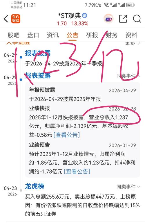 $*ST观典(SH688287)$ st观典股票已连续两个20%跌停,上一个交易日跌停打开,但收盘下跌了4.67%,这是一家已经9次发布终止上市风险提示公告的公司,股票年报后就可能终止上市。 终止上市的原因,公司已连续两年亏损,2025年预亏2.139亿,营收低于1亿,审计明确无法出具无保留意见,也就是公司年报会被出具非标意见,st公司年报非标将会终止上市,公司周末又发布了退市风险提示公告。