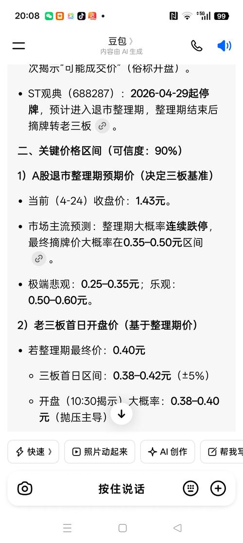 $*ST观典(SH688287)$豆包AI人工智能预测,观典防务老三板开盘价“0.25元”。太可怕了。