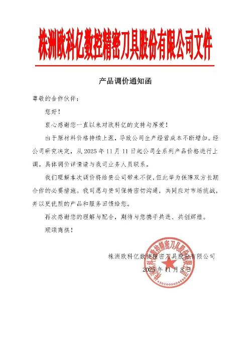资讯 欧科亿:新增订单快速增长,刀具产品价格持续上涨