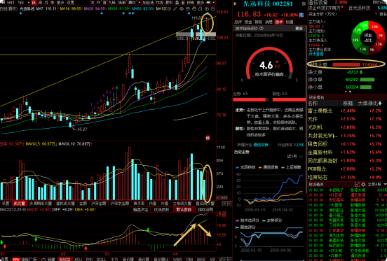 $仕佳光子(SH688313)$$天孚通信(SZ300394)$$光迅科技(SZ002281)$ 各位老铁早上好;关注标的解析:(个人观点仅供交流学习,不作为投资操作依据。) 1、光迅科技: 最强核心之一,周五直接涨停,趋势还没坏,继续当主线龙头看。今天重点不是追,而是看能不能在高位继续稳住112-114一带上方,老仓持有为主,冲高可分批做T。 2、天孚通信: 强趋势延续型,比光迅更适合看趋势波段...