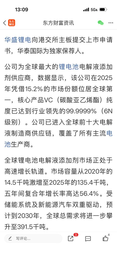 资讯 华盛锂电申请港股上市,至多筹资约3亿美元