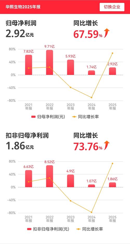 #社区牛人计划# $华熙生物(SH688363)$ 2025年公司实现营收41.99亿元(同比-21.82%),归母净利润2.92亿元(同比+67.59%);经营活动现金流净额6.27亿元(同比+11.15%)。 这是一份让市场感到“割裂”的成绩单。营收连续三年下滑,从2022年峰值69.59亿元跌落至41.99亿元,累计蒸发近三分之一。但归母净利润却...
