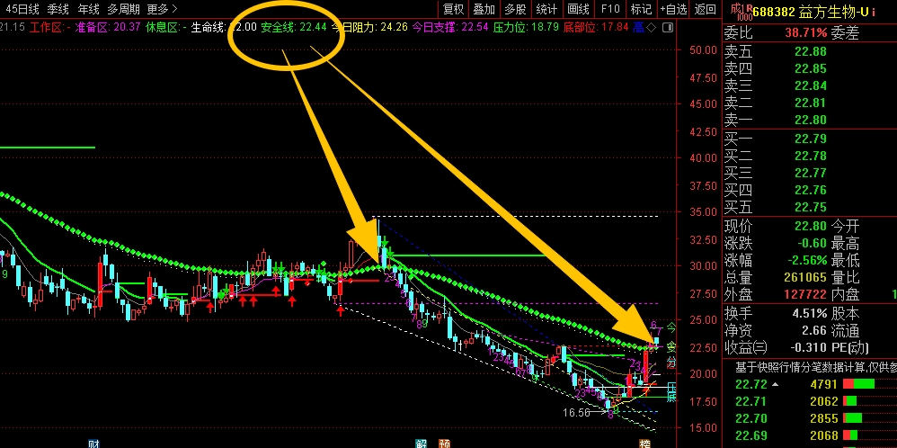 $益方生物-U(SH688382)$中期趋势是走弱的,明显的高位震荡回落的整体趋势,不过近期这两周盘面跟着板块反弹起来,幅度还不错,并且这里拉高到了安全线22.44位置区域,前期每次反弹到安全线区域都被压制随后继续下跌,所以当下就要高度关注,如果能站稳安全线,那就相对强势,可以持仓继续观察,但不能重仓,如果不能站稳,那就又要重复前期的回落动作了,需要谨慎应对,有低吸的仓位可以高抛止盈不纠结。