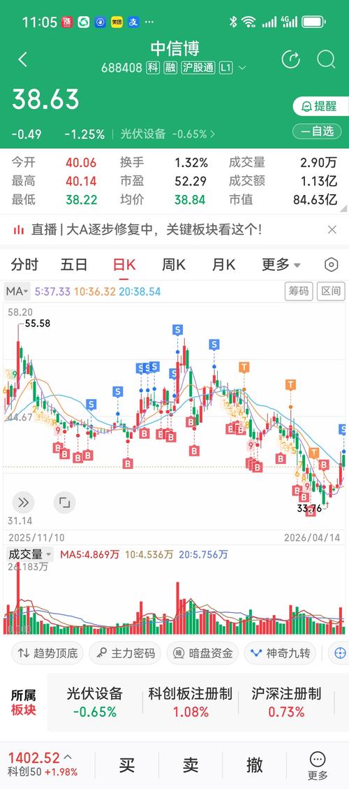 $中信博(SH688408)$是如果能拉红,再冲过41,说明主力进场了