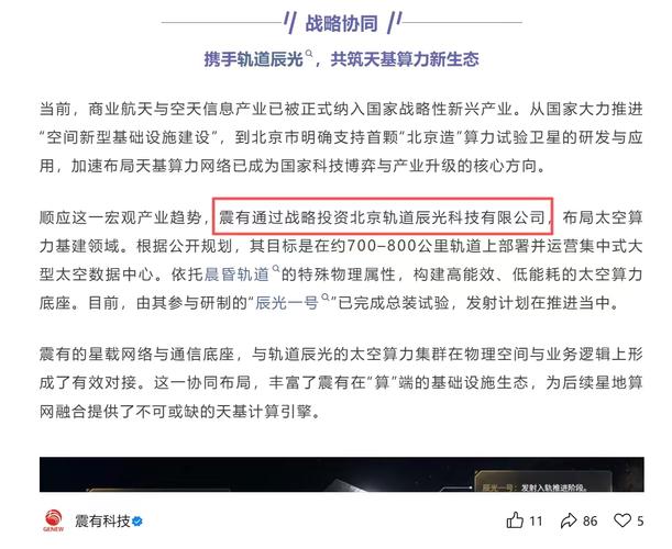 震有科技投资轨道辰光,正式切入太空算力,这波能来行情吗?