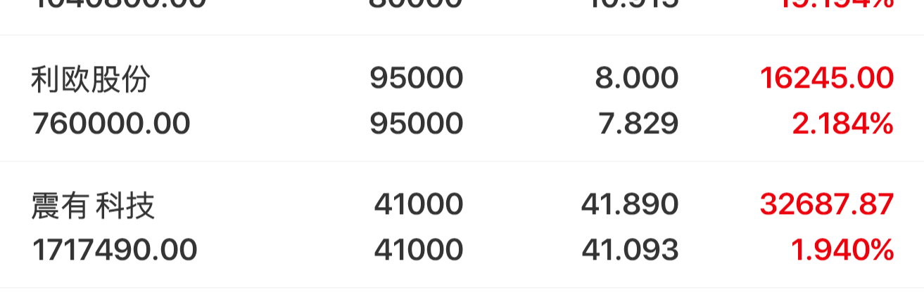 $利欧股份(SZ002131)$ 前天涨停昨天就萎了,处于分歧整理状态,7.8元为关键支撑,守住就耐心观望,等待低吸机会,AI数字营销跟风本质没变。用底仓1/3做T,8.15元以上滞涨T出,破7.8元减仓,别拿着不动,每天稳赚差价也行! $震有科技(SH688418)$ 非主线标的,昨天调整幅度不大,41元是支撑,拿着底仓观望,不折腾,有反弹就考虑减仓,主力偷偷净流入1200万,卫星互联网+量子通...