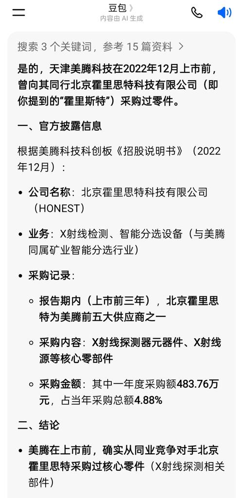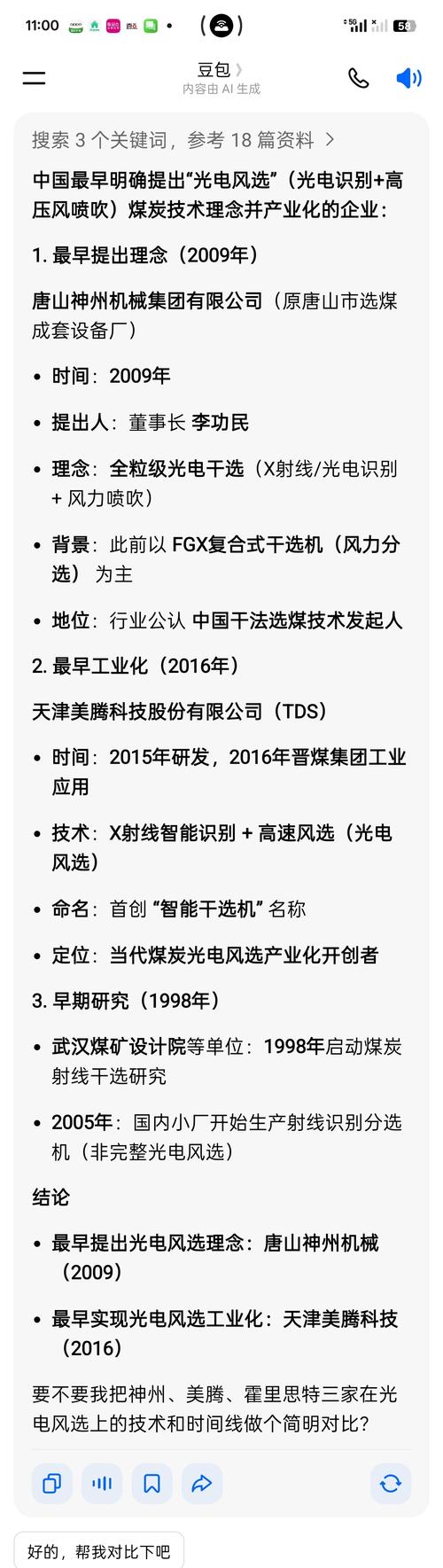 $美腾科技(SH688420)$ 有些人老是谴责美腾股票为什么从上市以后一直下跌,但是指不出来问题所在,自己和朋友都买了一点,为什么会下跌呢?前一段时间一直整不明白,但是有了豆包以后就很清晰了,3点产品到底是谁先提出来的?到底是谁先用的?世界上使用最早的国家是英国,2,国内提出这个理念的是唐山神州,但是并非最早应用,近些年来也已经正式投产并应用到了煤炭洗煤厂,3,光电分选和那个就是安检机是一个道理...