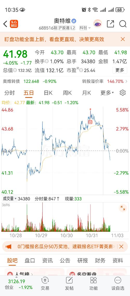$奥特维(SH688516)$不调整转股价格了。明面上是说,咱公司不缺钱,你可以直接按照债券的形式来处理。暗地里是说,对于现在的股价我认为还可以涨的,转股价并不高。不过对于买卖转债的人来说,是个利空,肯定会对正股打压,让狗公司看看是否有能力维持股价,或者说可以拉升股价