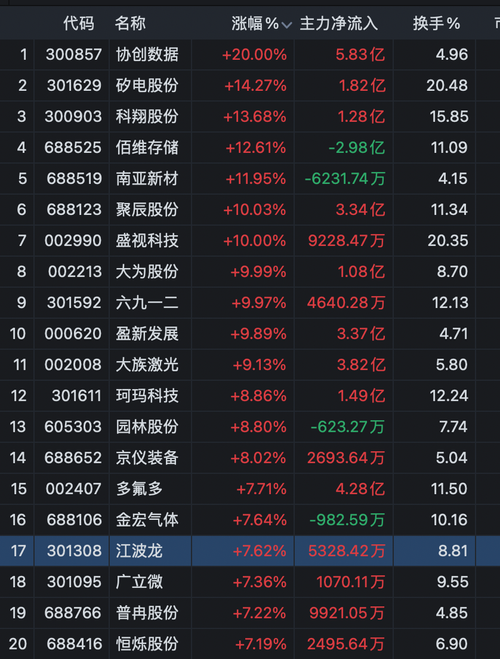 $众泰汽车(SZ000980)$ 今天A股继续大幅上涨,而核心上涨的板块依旧是科技,今天存储芯片股继续大幅上涨,截止收盘有20个存储芯片股大幅上涨,其中有11个直接涨停了,存储芯片股大幅上涨,背后主要是有3个利好驱动的,而最近公布年报的公司来看,有8个利润直接翻倍了,真的是业绩驱动的主线啊。 协创数据,暴涨20%$协创数据(SZ300857)$ 矽电股份,暴涨14.27% 科翔股份,暴涨13.68...