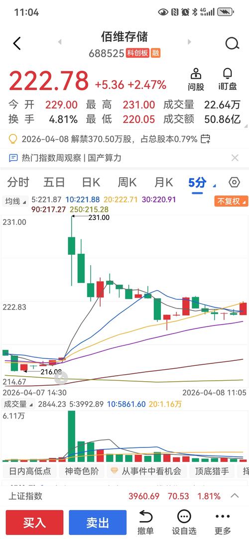 $佰维存储(SH688525)$ 佰维存储4月7日收盘点评: 一、走势复盘(稳健偏强) 今日小幅高开后震荡上行,开盘216.00元,盘中冲高至224.30元,收盘收小阳线。收盘点位:217.42元,涨幅+3.39%,成交额65.83亿元,换手率6.43%。今日主力资金净流入明显,高达4.42亿元。 情绪面:震荡中重心上移,资金承接稳定,板块回暖带动反弹。成交65.83亿,量能适中,资金参与度高,情...
