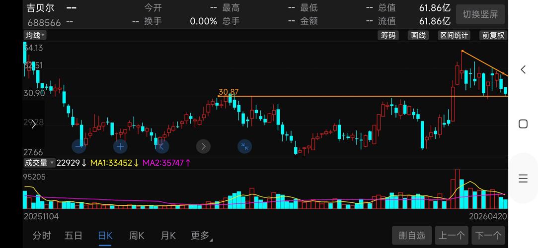$吉贝尔(SH688566)$低开低走震荡筑底。