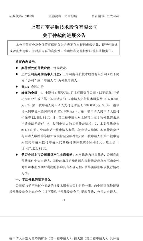 $司南导航(SH688592)$去年的仲裁进展公告以及最新的执行进展,1600万元收回来多好