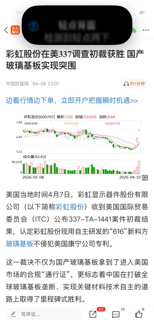 $康希通信(SH688653)$600707彩虹股份对美337调查初裁获胜两连板了。