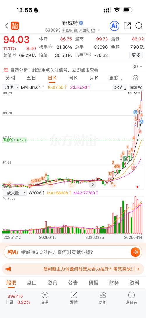 $锴威特(SH688693)$昨天进的锴威特一飞冲天
