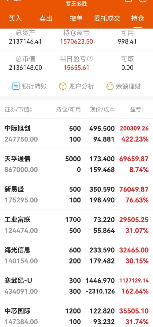$天孚通信(SZ300394)$$寒武纪-U(SH688256)$$中芯国际(SH688981)$妥妥的科技股持仓示范,“纪连海”+“易中天”+中芯国际,引领时代新潮流!