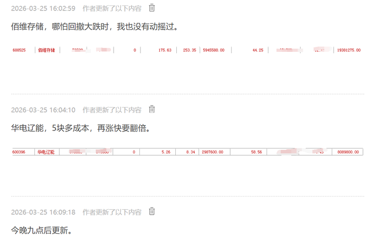 $中微公司(SH688012)$$中芯国际(SH688981)$$优刻得-W(SH688158)$本文是3月18日晚上写的复盘总结: 3月24日,我的操作。 一,华电L能,早上把昨天出的仓位,全部接了回来,我认为行情没有走完,目前赚几个板。 二,存储的重组,已经建仓。 三,机器人的重组,已经建仓。 四,佰维存储,依然不动。佰维今天如果水下去吸,也有7个点利润。而存储的另一支,今天去低吸,也有11个...