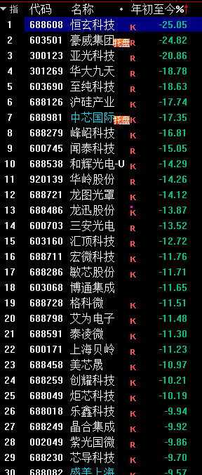 没有对比就没有伤害,翻看了今年半导体的涨幅榜堂堂的国替龙头再次列跌幅榜前列