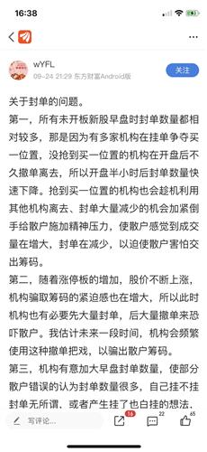 来自股友wYFL关于封单的问题。第一,所有未开板新股早盘时封单数量都相对较多,那