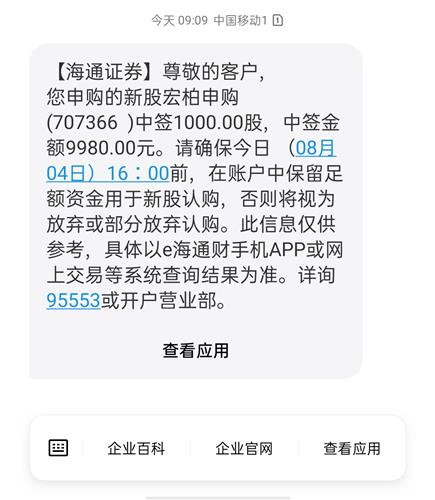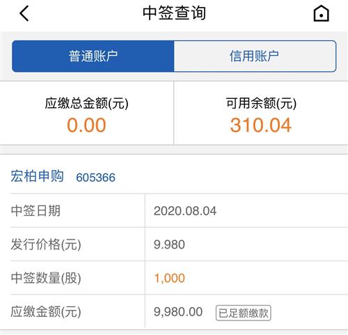 我也好象宏柏中签了,但帐户上只显示宏柏申购,代码707366,最新价,成本价9.