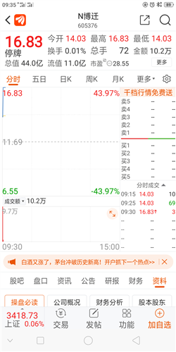 各位中签的股友们,为了共同的利益,本着该公司的实际价值,建议在50元/股以下都不要卖,我们小散中一签不易,都希望利益最大化,如果您有条件,能力,最好每天在开盘前挂一两手涨停价,祝股友们有好的收益,象我们在三人行那支新股一样,每个中签者都获得了20w左右的收益。