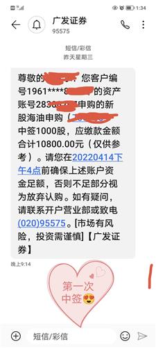 $海油配号(SH741938)$几年了第一中签