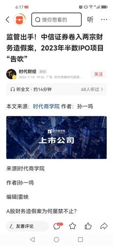 $中信证券(SH751000)$唉,中信证券卷入财务造假案,估计今天又悬了