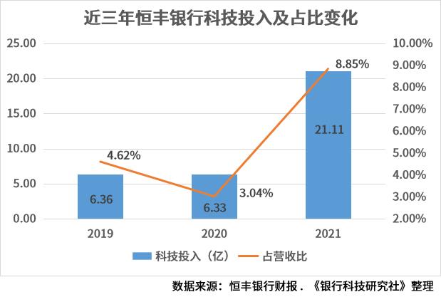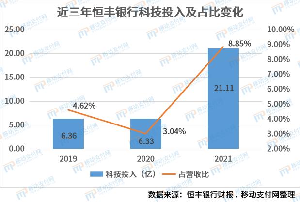 恒丰银行2021年科技投入占营收近9%,手机银行用户增长超21%