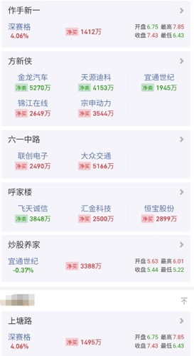 大游资和机构动向总览:陈小群(含留园路):卖出深圳华强1.1亿,买入好上好3200万葛老大:买入国海证券7400万方新侠:买入宗申动力3500万,买入锦江在线2600万,卖出天源迪科宜通世纪金龙汽车六一中路(含二纬路):持股大众交通5200万,买入联创电子4300万机构席位:3家机构买入宗申动力1.5亿,2家机构卖出深圳华强1.6亿简评:1、今天的龙虎榜一般般,净买入较多的仅有葛老大,其他的要...