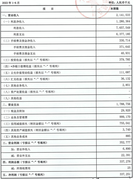 【大连银行上半年营收同比降30%净利同比降20%】大连银行股份有限公司(以下简称“大连银行”)于近日发布2023年半年度信息披露报告。报告期内,大连银行实现营业收入21.42亿元,同比减少30.34%;实现净利润3.37亿元,同比减少19.79%。截至2023年6月30日,大连银行资产总额4970.62亿元,负债总额4606.01亿元。截至2023年6月末,大连银行不良贷款为66.89亿元,...
