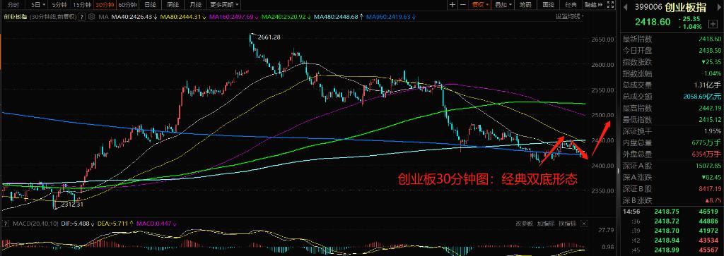 关注股圣唐哥,股市不迷路。大家好,我是股圣唐哥。唐哥曾在多家私募基金担任首席操盘手,精通各路机构、庄家、游资的操盘模式,每个交易日早上和下午都会为粉丝们献上最新市场解读和操作分析,带领大家在炒股的路上捉妖擒龙。闲话不多说,我们回归正题。一、说说大盘今天指数全线回调,沪指盘中还突破了新高,也算是比较强势的一种调整走势。创业板指数跌幅超过1%,拖了整个市场的后腿,不过从30分钟图形上看,今天的回落形成...