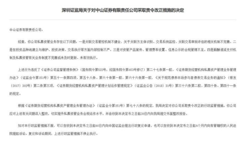 【深圳证监局对中山证券有限责任公司采取责令改正措施】