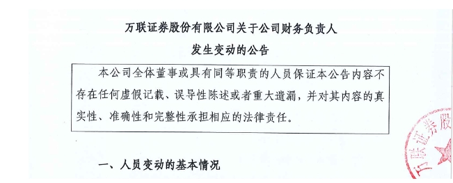 【万联证券高管新变动!副总裁不再兼任财务总监,蔡荣接任】