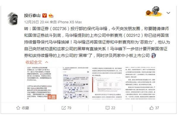 资讯 亮出41页说明 放话等举报被立案 国信证券前保代马华峰继续“硬磕”老东家