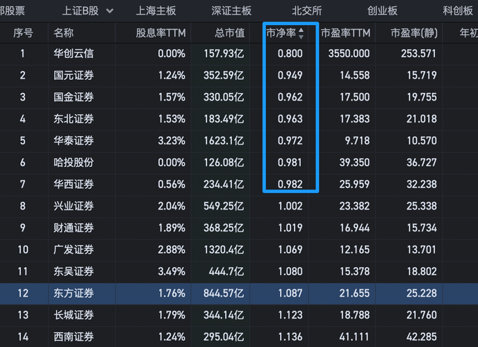 今天证券股大幅上涨,尤其是港股市场的国泰君安证券,最高涨幅超过198%,而且A股市场也有非常多的券商股,互联网金融股大幅上涨,刚刚我复盘了下A股市场的券商股的估值情况,发现A股的券商股真的还挺便宜,7个都是破净的,具体如下: 华创云信,市净率0.8倍; 国元证券,市净率0.949倍;$国盛证券(SH751929)$ 国金证券,市净率0.962倍;$华泰证券(SH601688)$ 东北证券,市净率0...