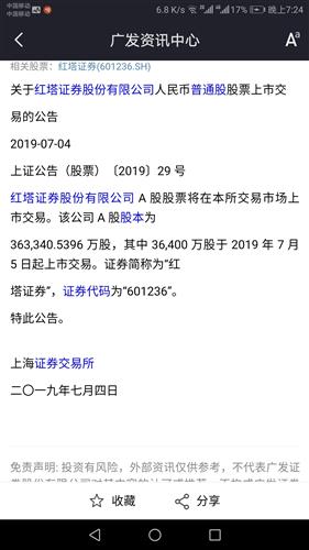 港澳资讯提供 (仅供参考,风险自担) 公司公告:关于红塔证券股份有限公司人民币普通股股票上市交易的公告 上证公告(股票)〔2019〕29号 红塔证券股份有限公司A股股票将在本所交易市场上市交易。该公司A股股本为363,340.5396万股,其中36,400万股于2019年7月5日起上市交易。证券简称为“红塔证券”,证券代码为“601236”。 特此公告。 上海证券交易所 二〇一九年...