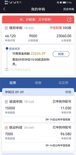 $德邦申购(SH787035)$已认购,九月好运,今年第一只中签股